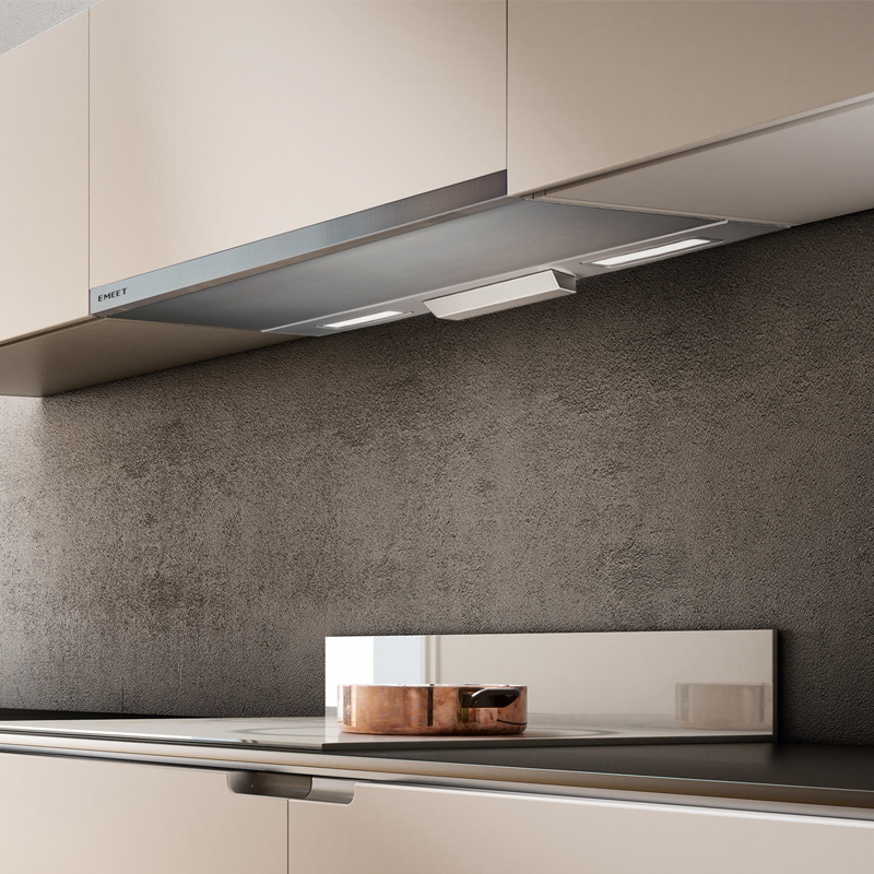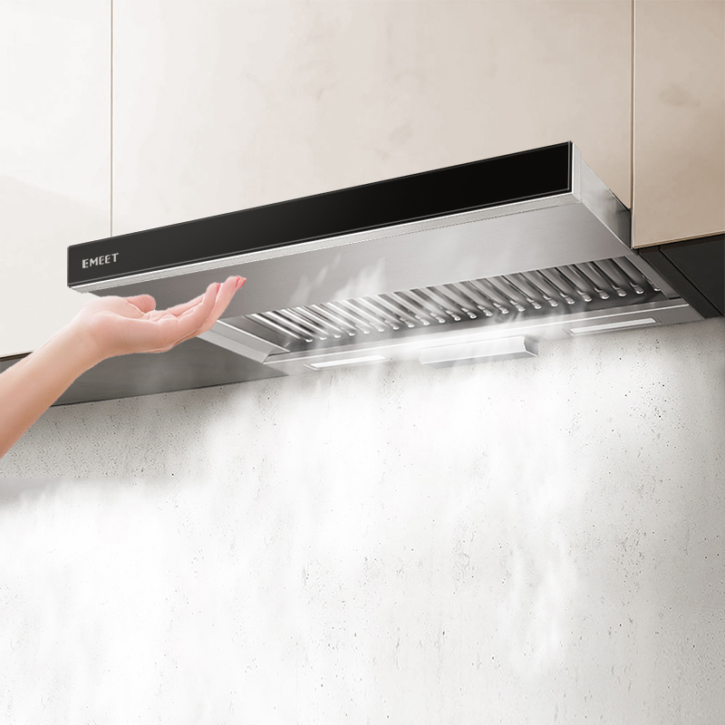 The Chinese version of the pull-out cooker hood features a stainless steel staggered mesh without disassembly and cleaning, bidding farewell to the difficult cleaning problem of aluminum alloy mesh plates. It is not afraid of frying and cooking with large oil fumes, and adopts a hidden cabinet installation mode. The metal double wind wheel is matched with a metal shell, with high suction and low noise. The hood is made of all stainless steel panels, and has a two-stage automatic stroke suction adjustment. The LED dual light lighting system has a long lifespan and low energy consumption. The hidden slide rail design completely isolates the track from oil fumes, preventing them from being corroded by oil fumes.