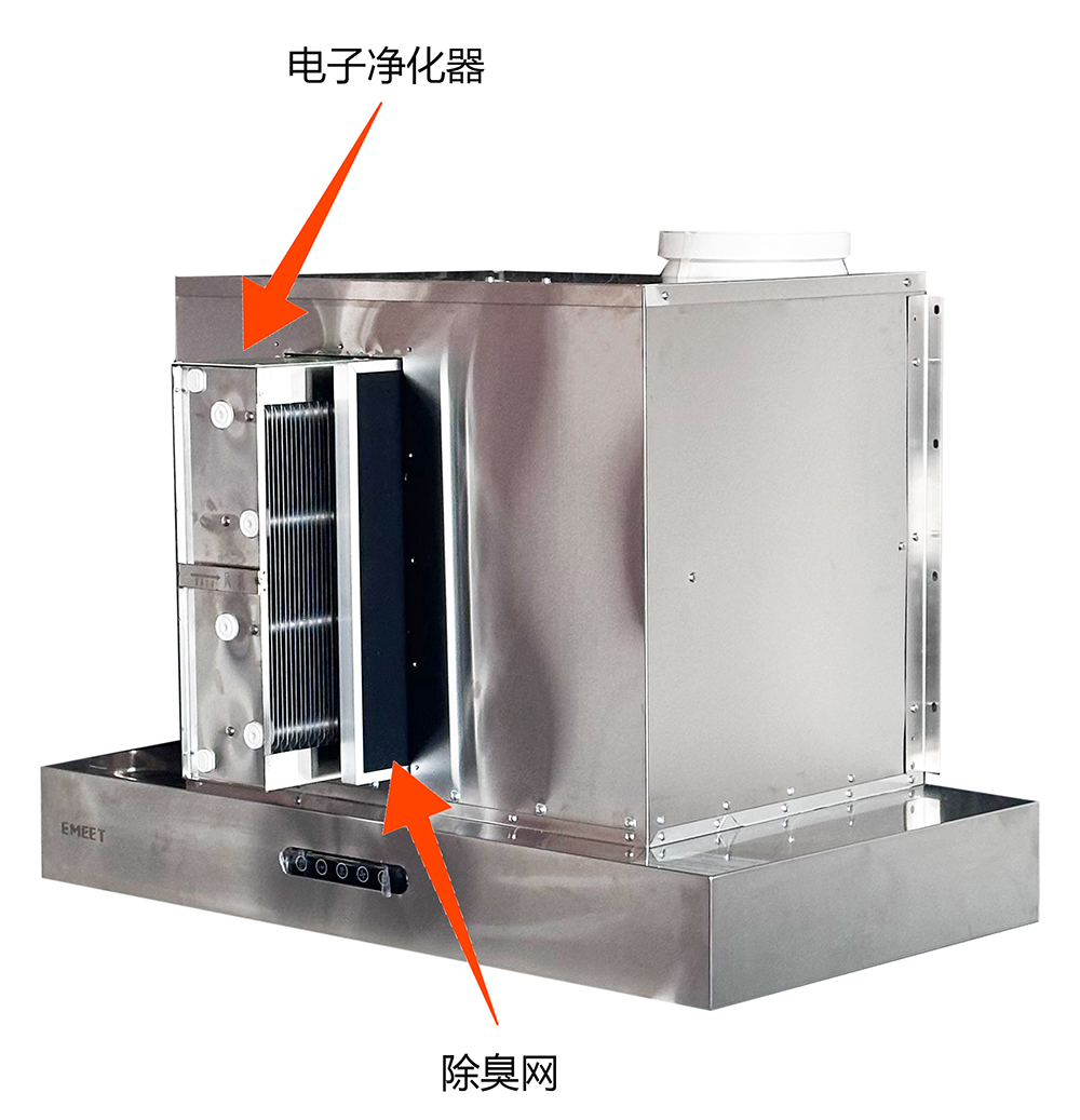 3、易洁环保油脂过滤网加二级除味网和电子净化器,油脂气味全面净化;