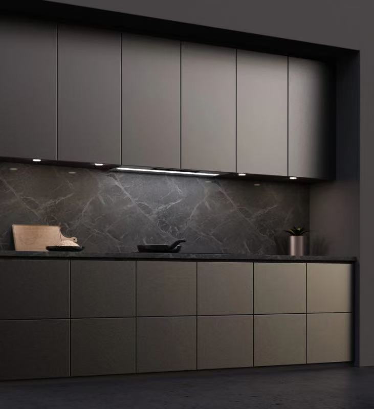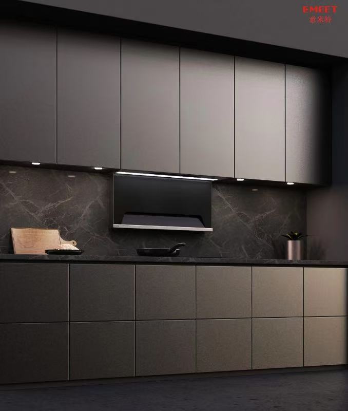 Invisible automatic range hood, the entire range hood is hidden inside the hanging cabinet, becoming tangible and intangible; When working, it automatically gets close to the cookware and draws oil fumes. When not working, the whole machine is hidden in the hanging cabinet, making the kitchen space more concise. DC variable frequency fan system, intelligent power regulation, output surging power, especially suitable for high-rise and long flue; Optional black body and white actual hood, better understanding of customer aesthetics; The lower part is equipped with a suction port close to the range hood, and the upper part is equipped with an invisible suction port to absorb escaping smoke; Invisible flip panel intelligent sensing switch, can be directly operated by pressing the touch screen when flipping downwards, and can be controlled intelligently by waving when invisible.