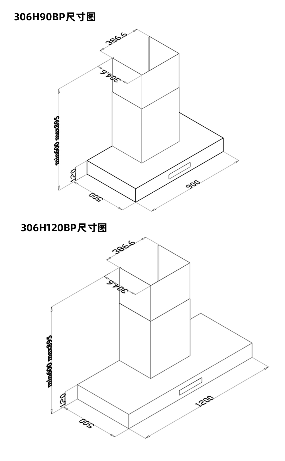 超厚烟罩 T型油烟机 306H90BP/306H120BP